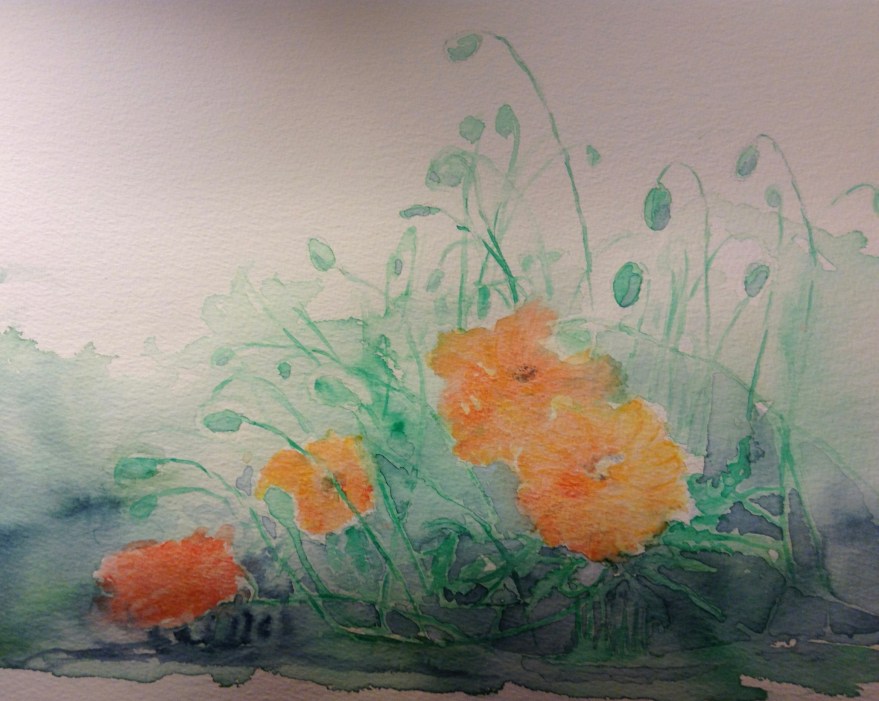 Watercolours, pen and ink