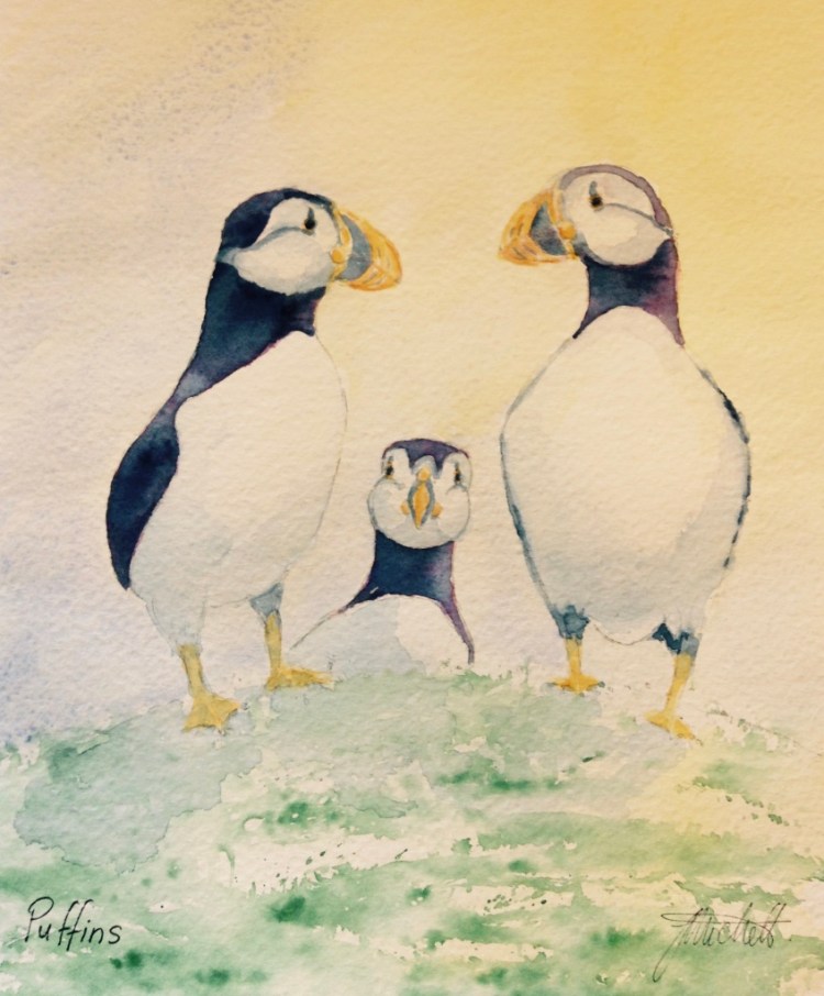 This is my puffin family. They are such entertaining birds, I wanted to capture their curious and social nature during breeding season.