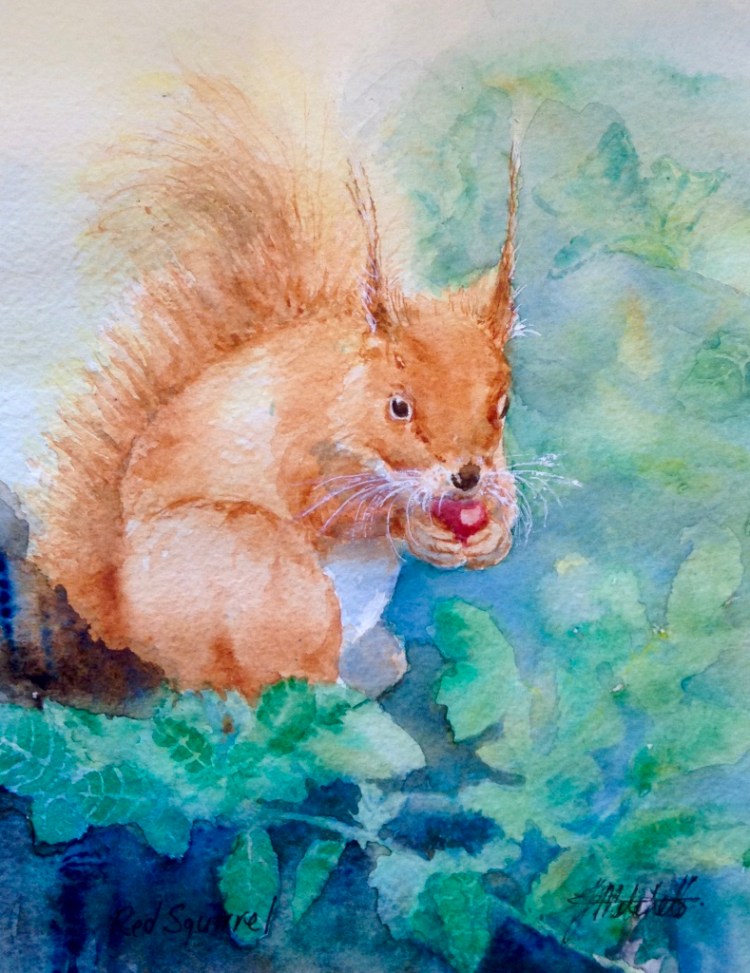 There is a small population of Red Squirrels in northern Norway and I was lucky enough to see one in an lovely churchyard.